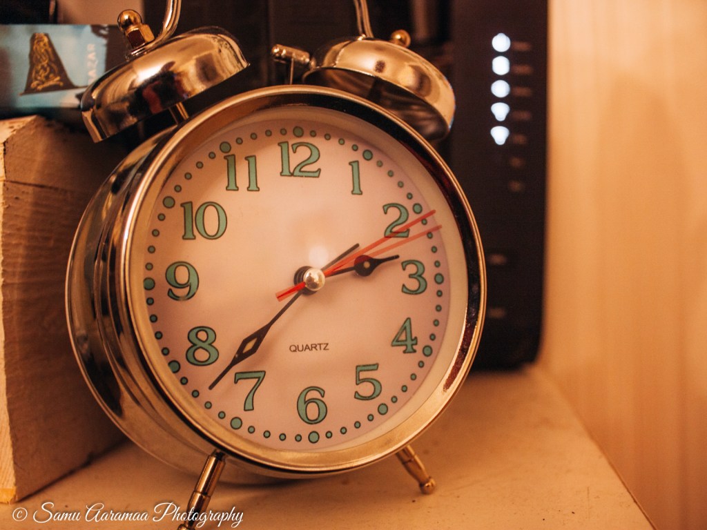 Illalla olin niin innoissani seuraavan päivän kuvausreissusta, etten malttanut millään mennä nukkumaan. Ja toisaalta tekemistäkin oli, piti tehdä niin paljon alkuvalmisteluja kuin mahdollista, ettei aamulla unisena unohdu mitään ja lähteminen olisi helpompaa. Pääsin lopulta nukkumaan ehkä vähän ennen puolta yötä. Kello herätti puoli kolmelta yöllä.