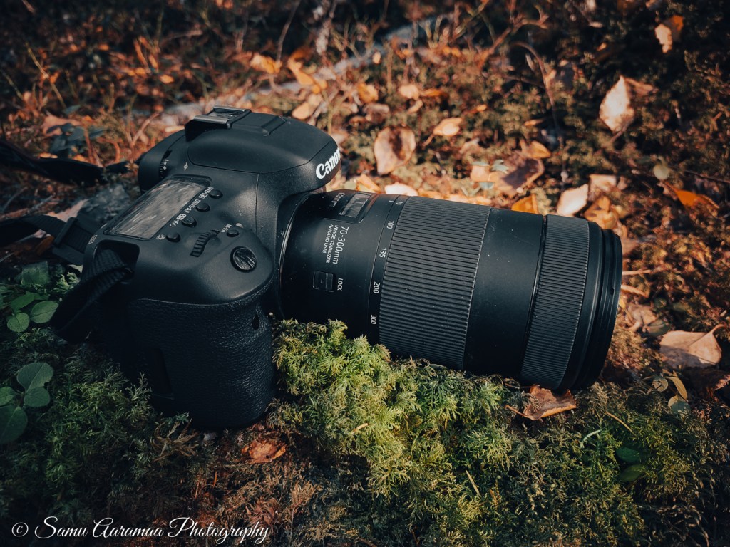 Ykköskamerana on peilitön täyden kennon Canon R6 Mark II ja kakkoskamerana vanhempi peilillinen ja kroppikennoinen 7D Mark II. Molemmissa on puolensa.