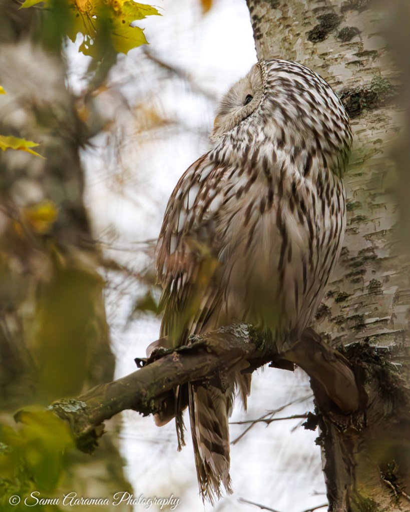 Mikä tekee tästä viirupöllökuvasta eettisen? Se on otettu syksyllä sulan maan aikaan. Se on kuvattu kaukaa pusikon läpi 600 mm polttovälillä eli pitkällä objektiivilla. Pöllöä ei häiritty kuten kuvasta näkyy ja pöllön sijaintia ei kerrottu kenellekään.
