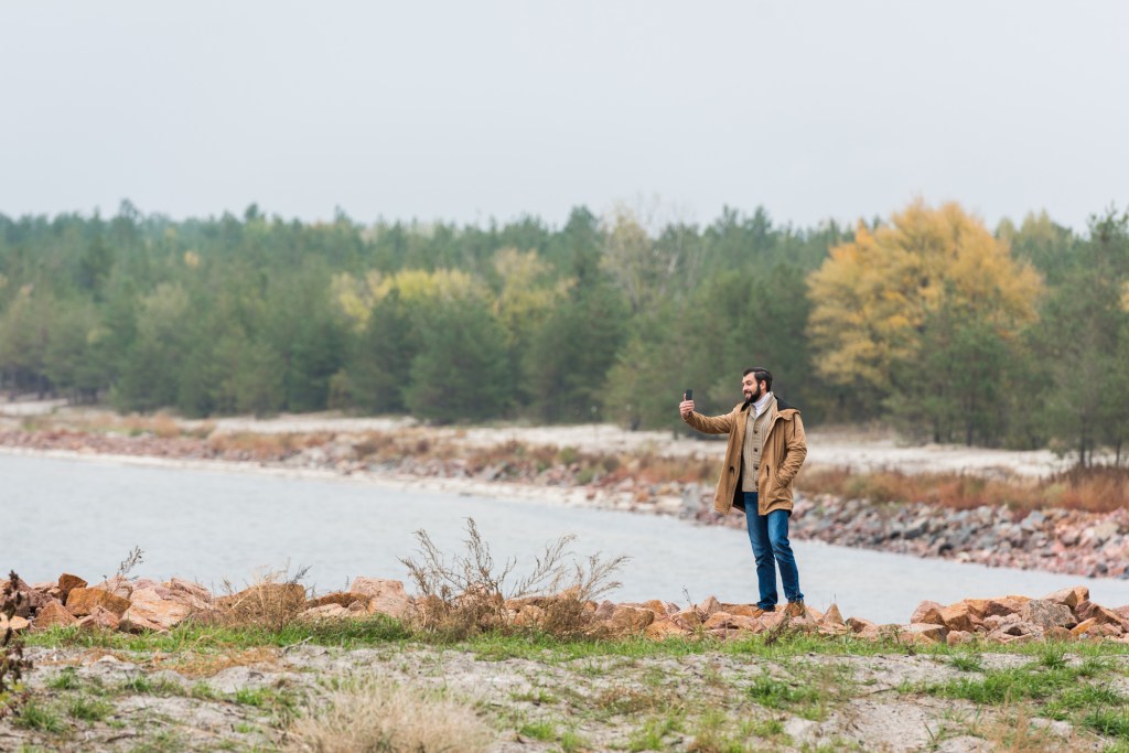 Mies ottaa maisemakuvan älypuhelimella – depositphotos.com