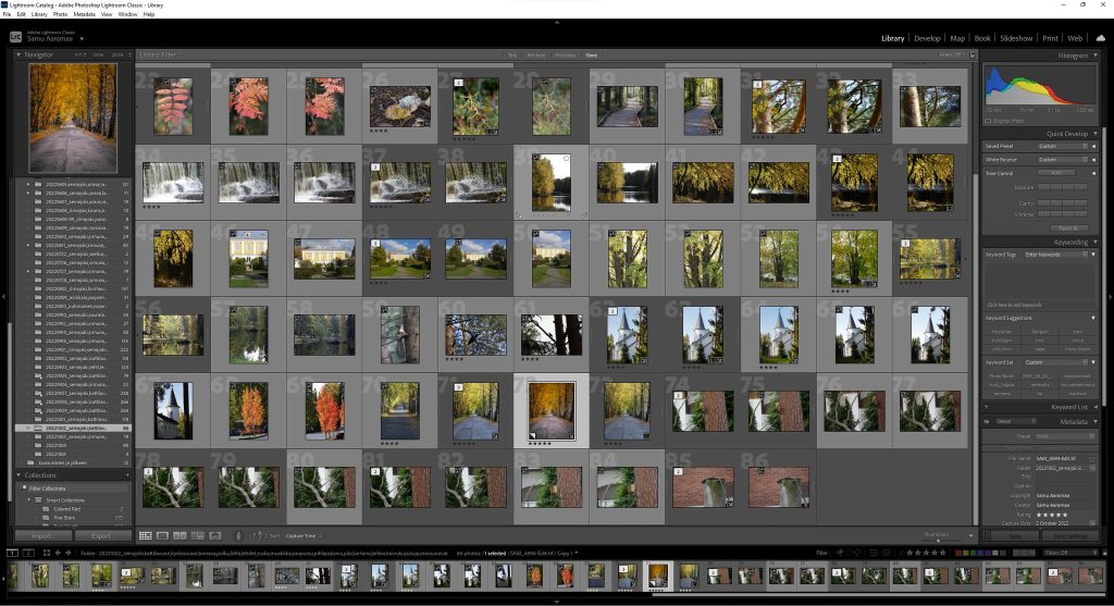 Sitten niihin ohjelmiin. Pääasiassa käytän Adobe Lightroom Classicia kuvien organisoinnissa ja käsittelyssä. Joskus otan avuksi Adobe Photoshopin. Tai pikaisesti yhtä kuvaa muokatessani käytän kevyempää Adobe Lightroom -ohjelmaa (huom, ei Classic).