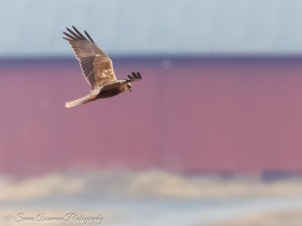Sinisuohaukkakoiras tuli niin lähelle autoa, että meni kuvaajalla pasmat sekaisin ja kuvasta tuli mitä tuli.