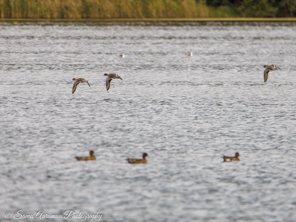 Jatkoin matkaani ja seuraavaksi järven selältä lähti sorsaparvi lentoon ja päästin sarjan kuvia siihen suuntaan tunnistuskuvan toivossa, jotka sainkin, linnut olivat haapanoita. Näyttää siltä, että haapanakoiraat ovat jo värjäytymässä uudelleen kohti kevään juhlapukua.