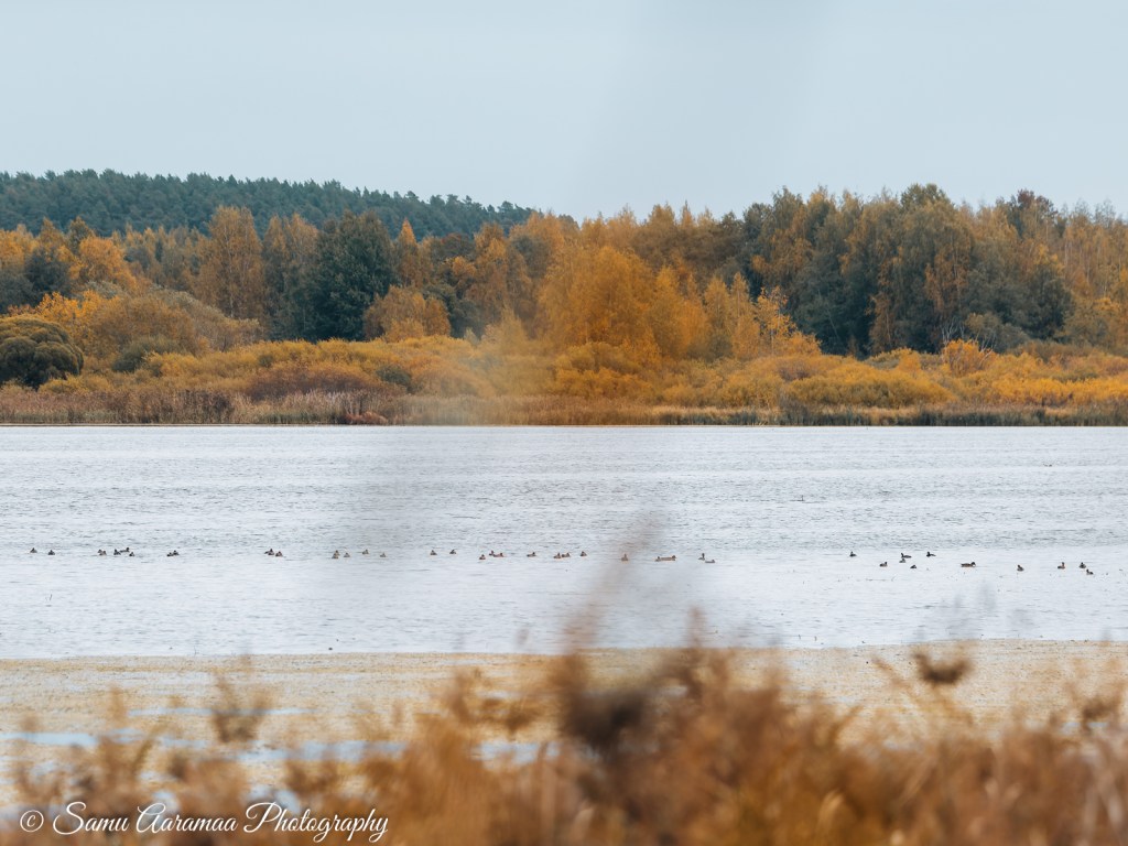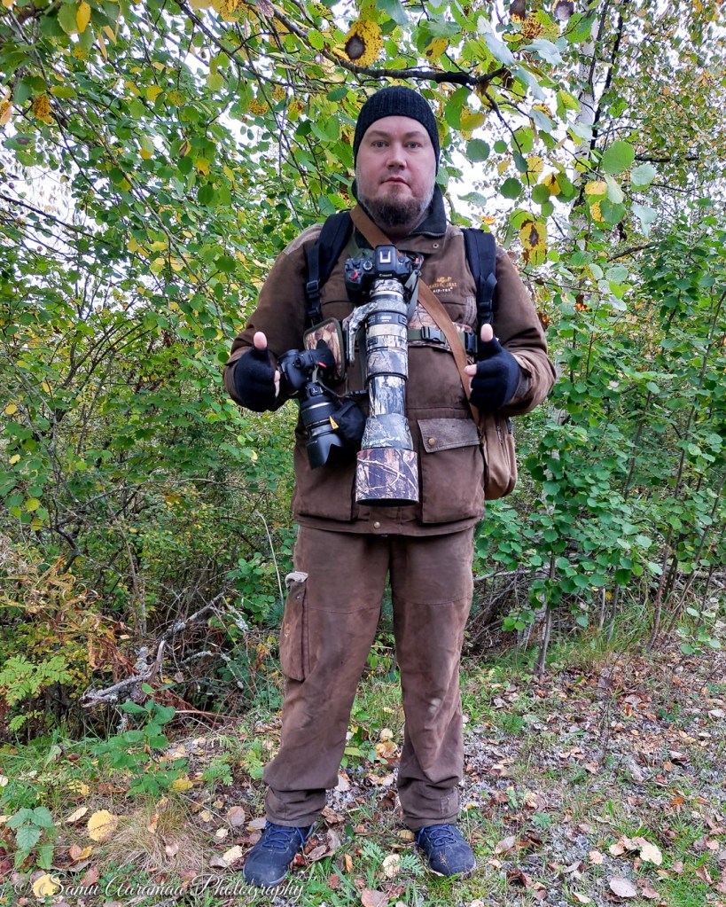 Aamulla heräsin hyvissä ajoin ja meinasin jo jatkaa unia, kun yö meni niin huonosti. Tulin kuitenkin toisiin ajatuksiin ja rupesin kahvinkeittopuuhiin. Kahvia juodessani katsoin somekommentit ja jaoin yhden kuvan eri ryhmiin. Puin ulkovaatteet päälle ja takin alle laitoin villapaidan siltä varalta, että jään linturetken jälkeen lintutornille seuraamaan syysmuuttoa. Keräsin varusteet kasaan ja puin kameraliivin päälle. Heitin repun selkään ja telejatkeen olkalaukkuun. Ripustin kamerat rinnuksille ja lähdin pihalle. Heti pihalle päästyäni totesin ilman olevan melko raikas, vain noin 8 astetta. Laitoin tavarat autoon ja palasin sisälle vaihtamaan lippalakin ohueen pipoon ja laitoin vielä sormikkaat käteen. Valmista ja ei kun kohti Iidesjärveä.