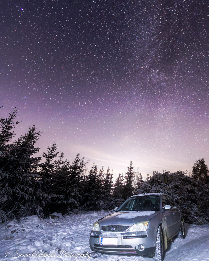 Päätimme 4.12.2024 kaverini kanssa lähteä kuvaamaan linnunrataa pimeään paikkaan, kauas kotoa. Määränpäänä oli Laipanmaan erämaa-alue Pälkäneellä. Pimeä paikka ei nyt sitten ollutkaan niin pimeä, kuin mitä siitä sanottiin. Kieltämättä se harmitti aluksi. Kivaa kuitenkin oli ja kuviakin otettiin. Suurimmaksi osaksi reissu kyllä taisi mennä harjoittelun piikkiin. Matkaa kertyi yhteensä 134 kilometriä ja aikaa koko reissuun kului kuusi tuntia. Menomatka kesti reilun tunnin, kuvaamista harrastettiin vähän yli pari tuntia ja loppumatka olikin sitten pitkä ja hidas, pienen mutkan kautta, kuinkas muutenkaan.