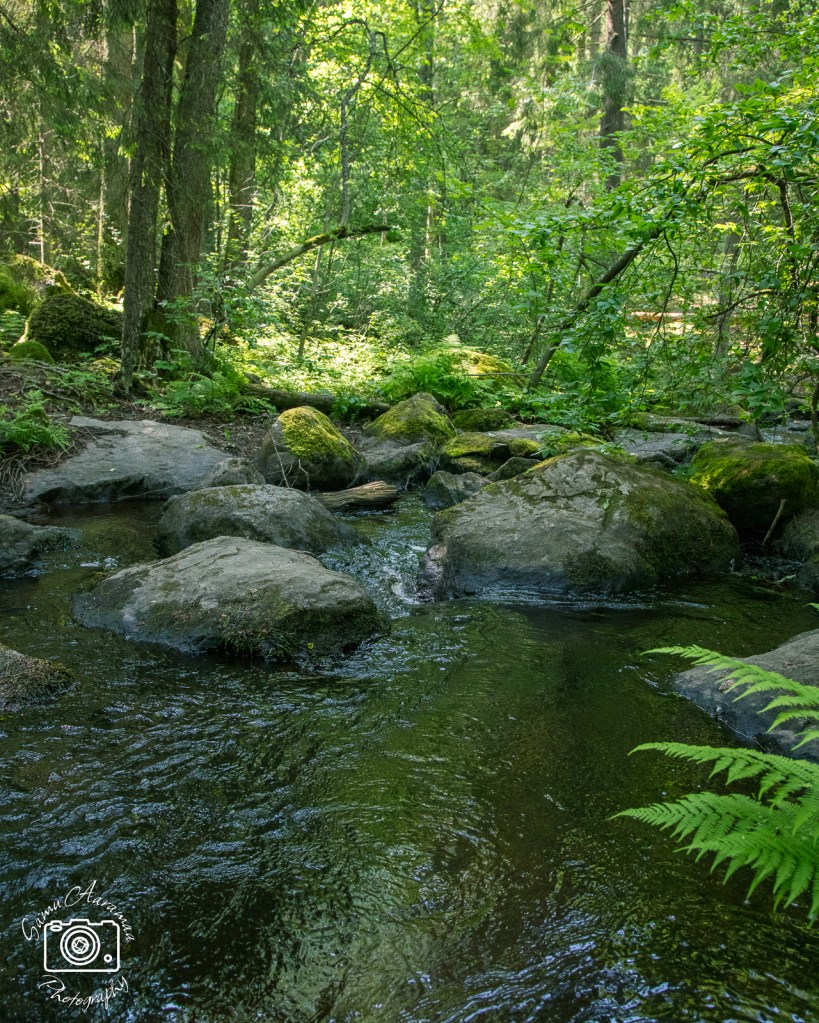 Muutaman sadepäivän olen tehnyt sisähommia ja somejono näyttääkin hyvältä. Jonossa on jo julkaisumateriaalia heinäkuun alkupuolelle asti. Tämän päivän sääennuste näytti sen verran lupaavalta, että oli kuitenkin jo pakko päästä ulos. Päätin käydä katsastamassa Peltolammi-Pärrinkosken luonnonsuojelualueen kesäkuosissaan. Eikä se pettänyt taaskaan, hieno paikka se on kaikkina vuodenaikoina. Tänään se tarjoili hienoja näkymiä, tutut kivat polut, kosken kohinan, lintuhavaintoja ja yhden uudenkin linnun: idänuunilinnun. Sain myös lisää pisteitä kasveista ja hyönteisistä. Mistäpä tässä ei olisi hyvä mieli. Seikkalin alueella pari tuntia ja kuuma tuli, kun olin pukenut vähän ekstraa senkin takia, että alueella voisi olla hyttysiä. No, eipä juurikaan ollut. Peukaloista yritin kuvata moneen kertaan, mutta vaikka niitä lauloi alueella useitakin yksilöitä, ne pysyttelivät hyvin piilossa katseelta ja etenkin kameralta. Yhden sain lopulta jokseenkin kameran eteen odotustaktiikalla. Koskikuvat jäivät vähän valjuiksi, kun ei voinut käyttää pitkää valotusaikaa, tarvitsisi harmaasuotimen suotimen objektiivin eteen. Oli miten oli, mukava pikkuretki tuolle alueelle taas.