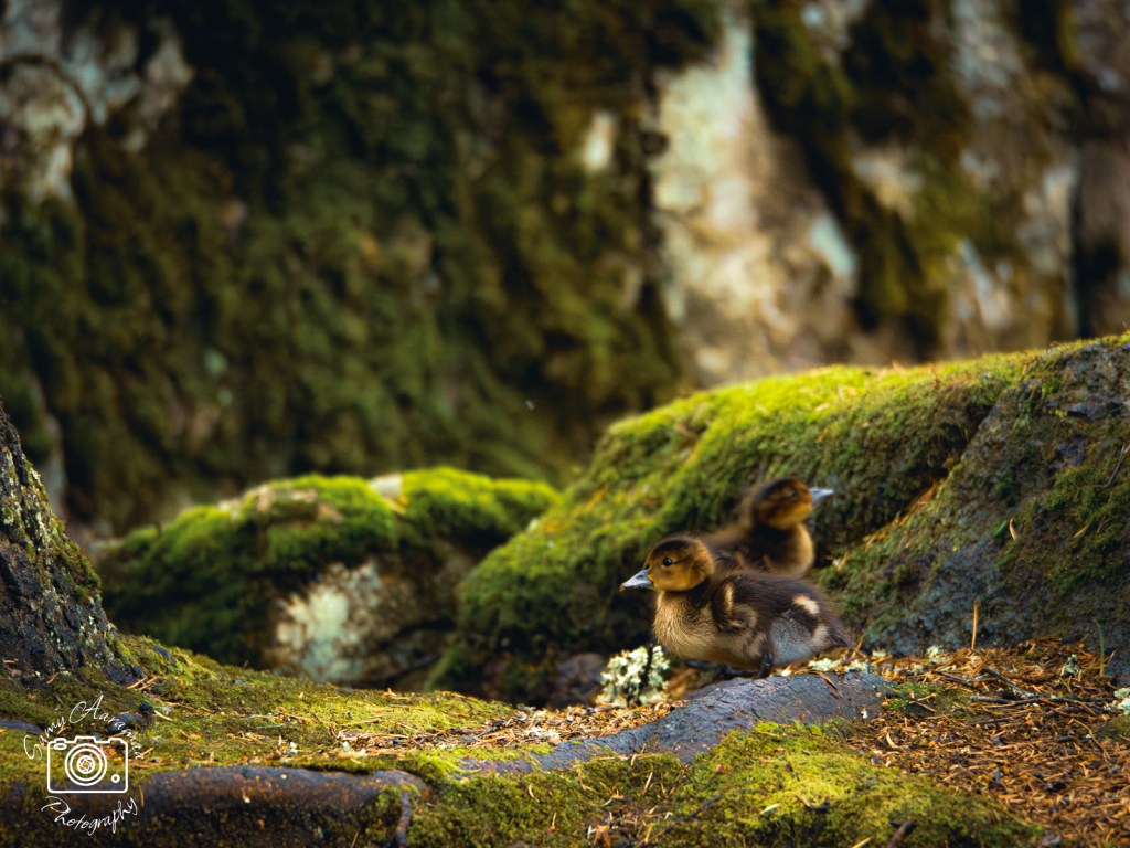 Yhteinen kielemme oli rakkaus eläimiä kohtaan ja se riitti. Sinitiaisilla oli pesä parinkymmenen metrin päässä puussa olevassa pöntössä ja seurasimme niiden touhuja. Välillä ruokittiin taas oravia. Sitten näin yhtäkkiä jonkun pienen karvapallon liikkuvan mustikanvarpujen seassa ja viereemme tuli hyvin päättäväisen näköinen haapananaaras, joten oli helppo päätellä kenen silmäterä pieni karvapallo oli. Sitten niitä ilmaantui toinen ja vielä lopulta kolmaskin. Hupu, Tupu ja Lupu olivat paikalla ja tarjosivat seurattavaa. Emo sai pähkinöitä syödäkseen ja poikaset etsivät omaa murkinaa maastosta kauempana meistä. Kaksi haapanavauvaa kulkivat koko ajan yhdessä, mutta yksi juoksenteli omia teitään ja emo kutsui sitä välillä. Kun haapanaperhe katosi näkyvistä, nainen viittilöi minulle, että kiertäisimme pienen lenkin, missä käsittääkseni oli ehkä luvassa lisää luontokappaleita. Sillä lenkillä emme sitten kuitenkaan nähneet muuta kuin lehtokotiloita, mutta luontokappaleita nekin. Nainen käveli aika nopeasti ja minulla oli vähän töitä pysyä kantamuksieni kanssa perässä, alkumatkalla näin nuoren lokinpoikasen ja olisin halunnut kuvata sitä, mutta en sitten juossut naista kiinni sitä ilmoittamaan. Eipä siinä, olin saanut jo aika paljon kivoja kuvia.