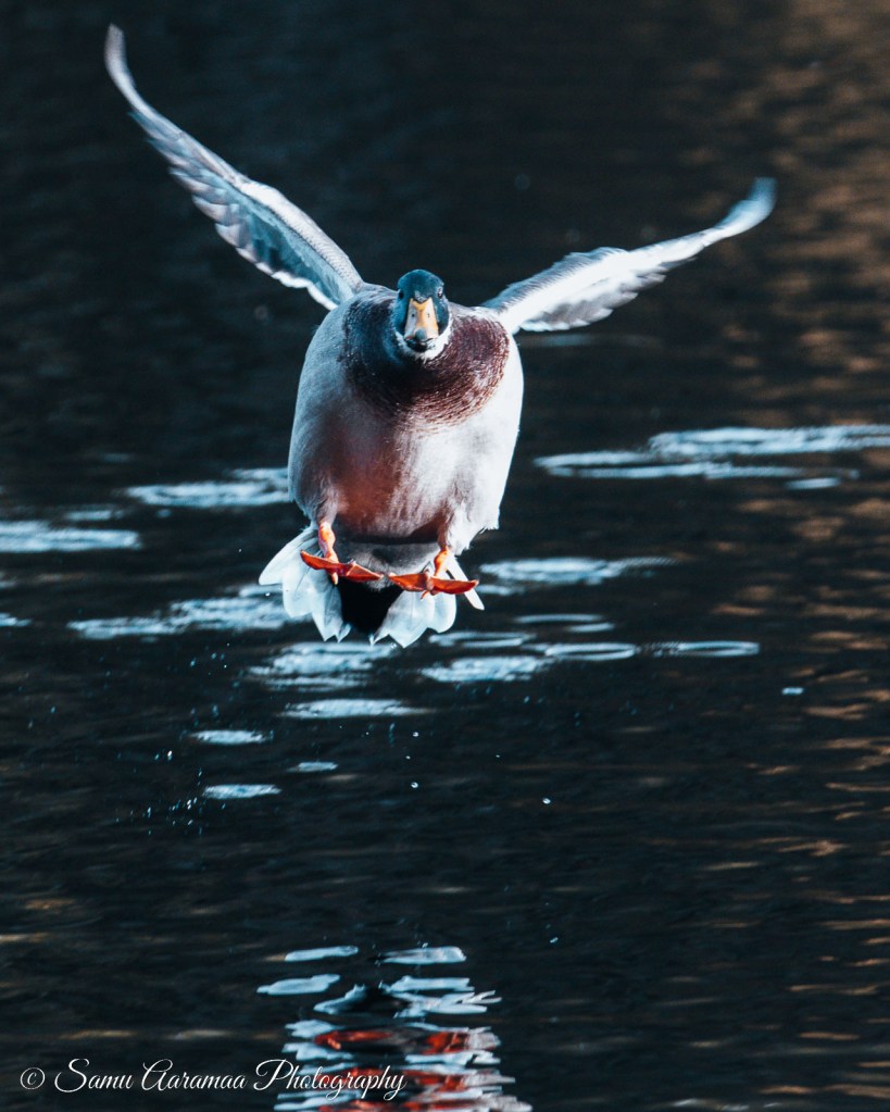 - Talvella voi kuvata lentoon lähteviä ja laskeutuvia sorsia