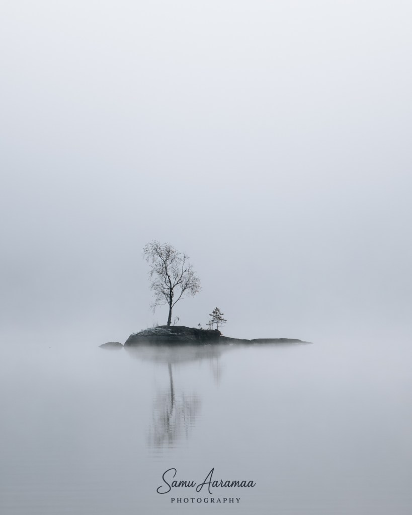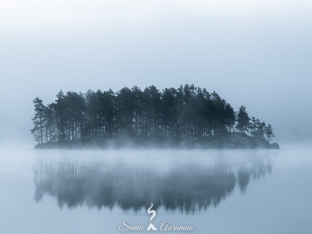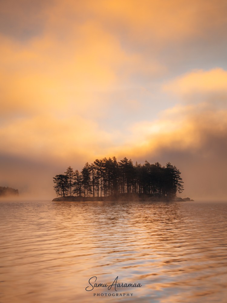 Jo matkalla näin järven ja hämärässä erottui saari, josta halusin ottaa kuvan. Asettelin kolmijalan rantaan ja säädin kameran asetukset kohdilleen. Sen verran pitkää valotusaikaa joutui käyttää, että käsivaralla kuvaamisesta ei olisi tullut mitään.