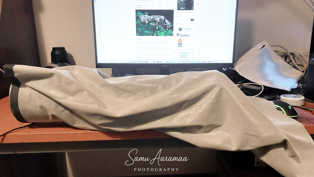 Huonoista sadehousuista sadesuoja kameralle ja objektiiville talvikuosilla