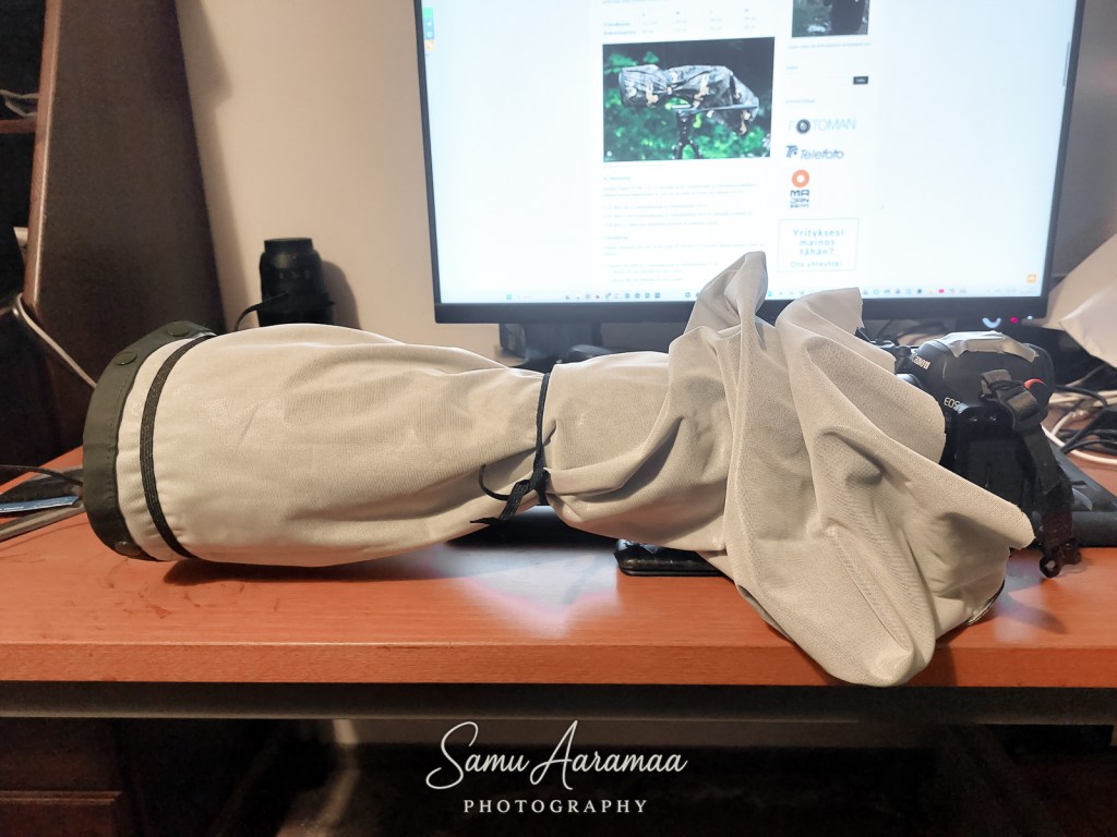 Tähän asti olen pärjännyt ilman mitään suojia – niin – ei ole tullut paljon käytettyä edes tuota Stealth Gearin suojaa. Mutta tässä kun on lukenut taas artikkeleita netistä ja katsellut YouTube-videoita sateella kuvaamisesta, niin kaikissa toistuu miten tärkeää kalusto on suojata sateelta, vaikka se olisi säänkestävä. Canon 7D Mark II oli hyvin suojattu, enkä murehtinut sateita, mutta nyt kun on uudehko kamera ja säänkesto ei ole ehkä yhtä hyvä, olen alkanut miettiä asoita uudestaan.