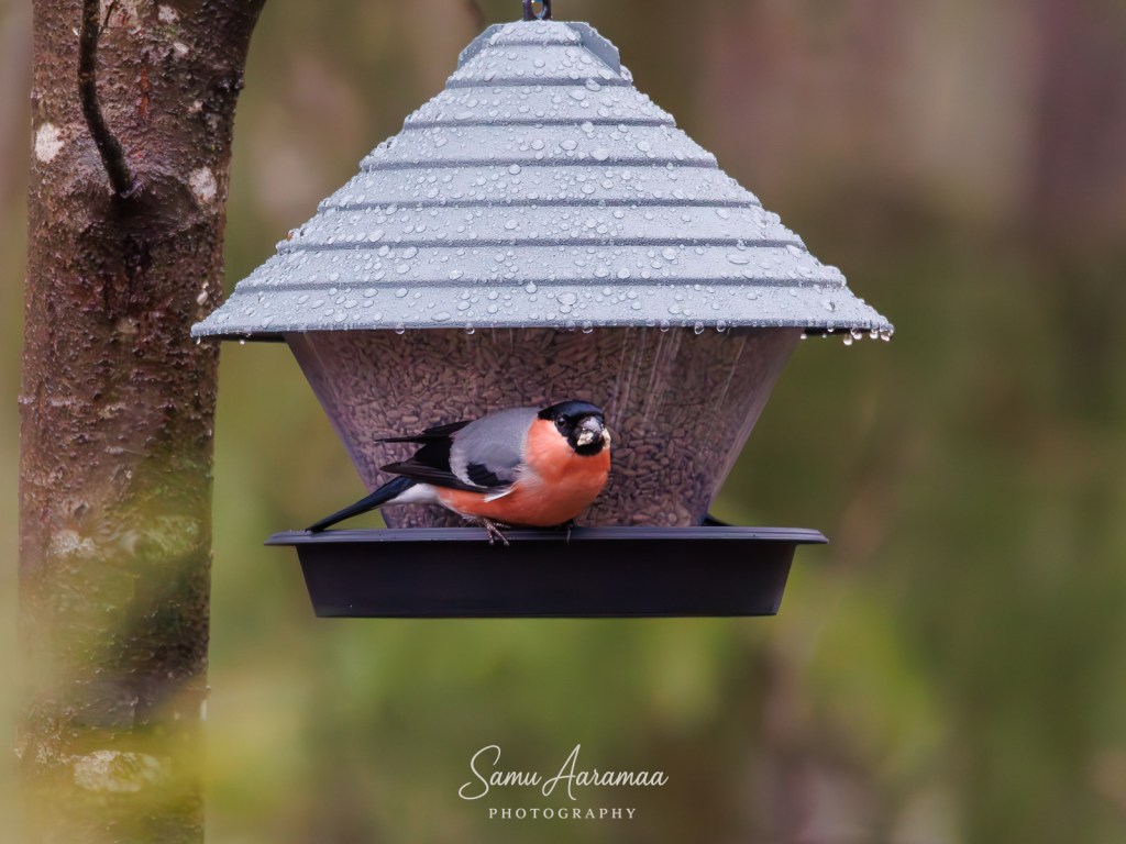 Havaitsin lähistöllä myös punatulkkuja, joten oli aika lisätä ruokailua, kun niille ei tali maistu.