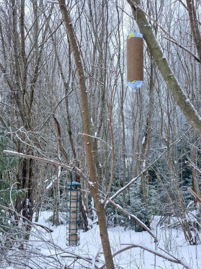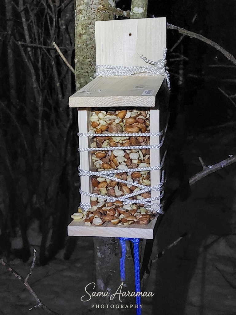 Täytin jyväsyöttimet ja vein uudet talitangot. Pelkäsin edelleen, että joku/jokin on käynyt sabotoimassa ruokintaani. Mietin vaihtoehtoja niin, että pää savusi.