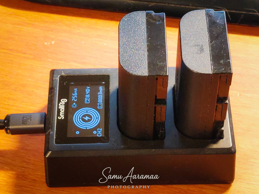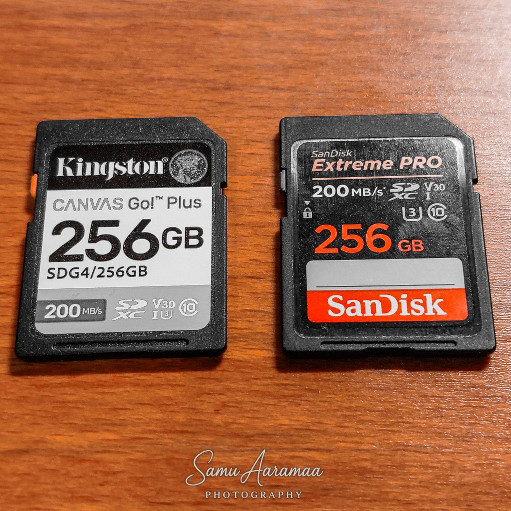- Muistikorttien tarkistus: Kylmässä sormet kohmettuvat, joten korttien vaihtaminen on hankalaa. Laita kameraan riittävän suuri ja nopea kortti valmiiksi, jotta vältyt turhalta näpertelyltä hangessa.