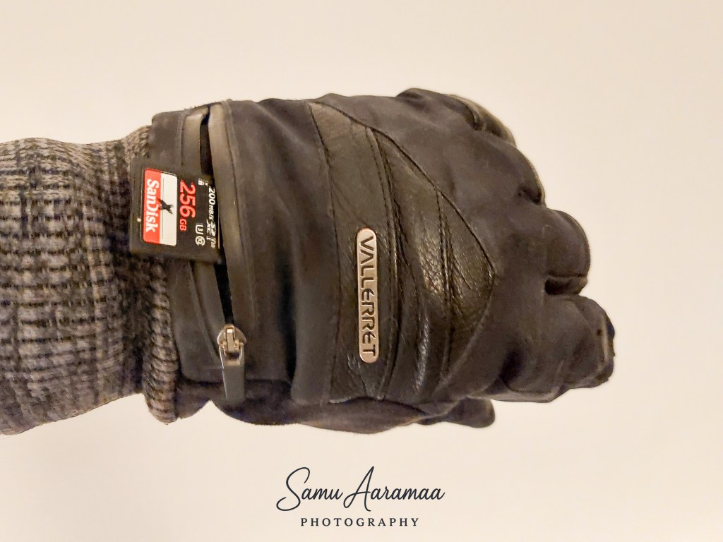 - Ota muistikortti talteen: Jos haluat päästä käsittelemään kuvia heti, ota muistikortti pois kamerasta jo ulkona ja laita se taskuun, lompakkoon tai hanskan taskuun jos hanskoissasi sellaiset on. Näin voit jättää kameran lämpenemään rauhassa laukkuun tai pussiin samalla, kun purat otokset tietokoneelle.