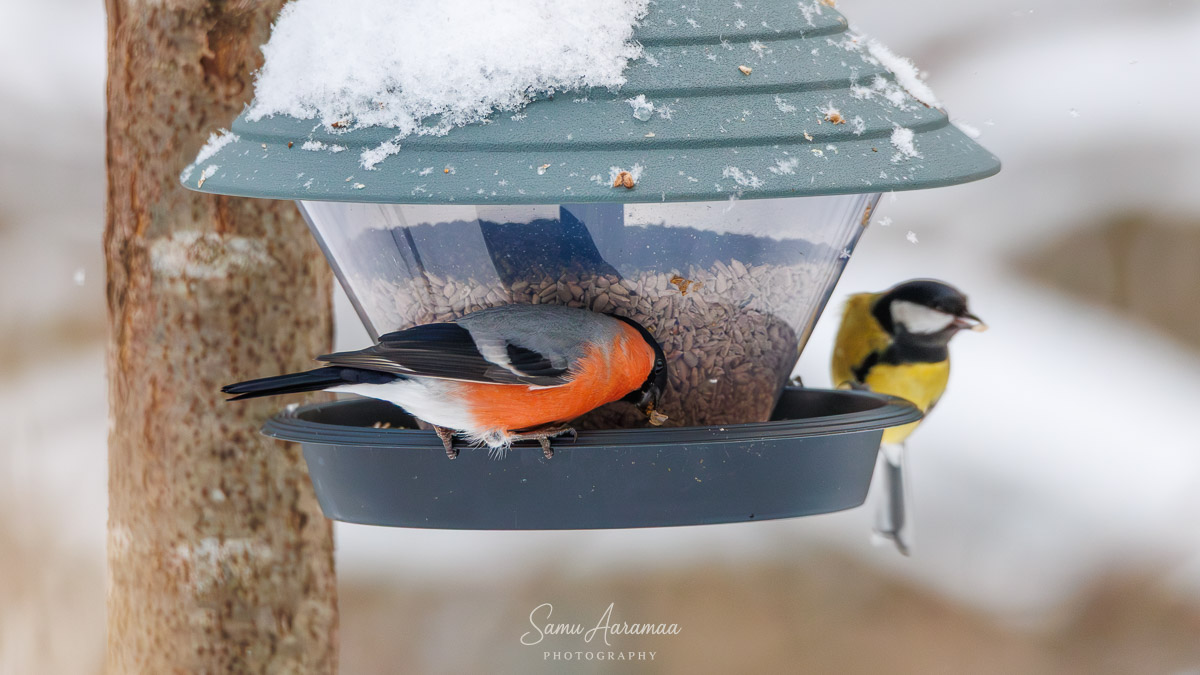 Metsäruokinnasta nauttimista, jossa havaitsin seuraavia lintuja, kuten kuusitiaisen, sinitiaisia, punatulkkuja ja käpytikan. Kylmältä suojautuminen oli liiallista, mutta hanskat toimivat hyvin teknologian kanssa. Orava vieraili myös ruokinnalla.